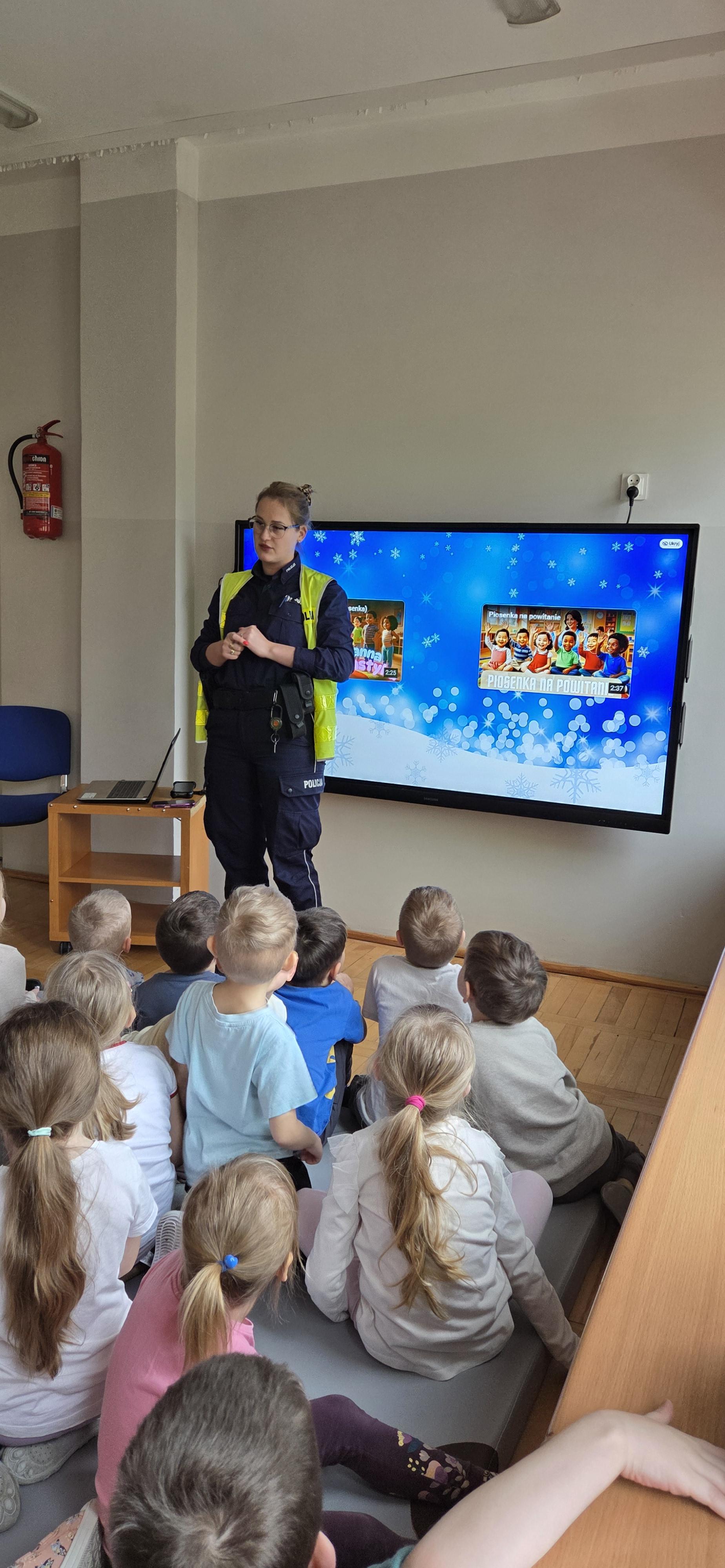 Kosmonauci na spotkaniu z pnią policjantką ''Bezpieczne ferie ''